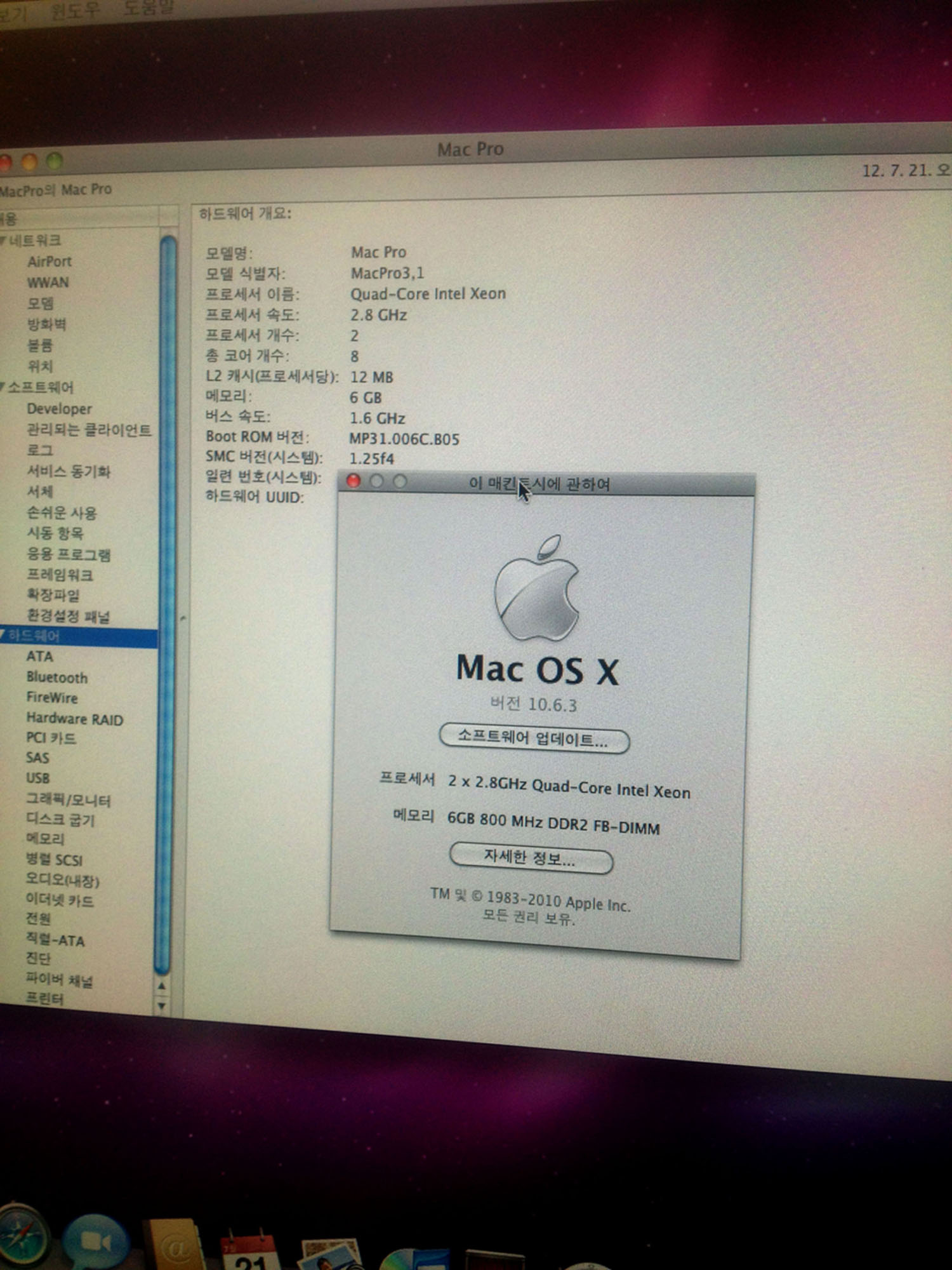 MacPro Desktop Octo Core (8Core) 제품입니다. 현재 하드 250기가. 램 6기가 사양이며, 물론 램과 하드 슬락 여유 있게 비워 있습니다. 희망하시는 셋팅 미리 언급주시면, 처리해서 드립니다. 직거래만 가능하고, 제가 배달해 드립니다.